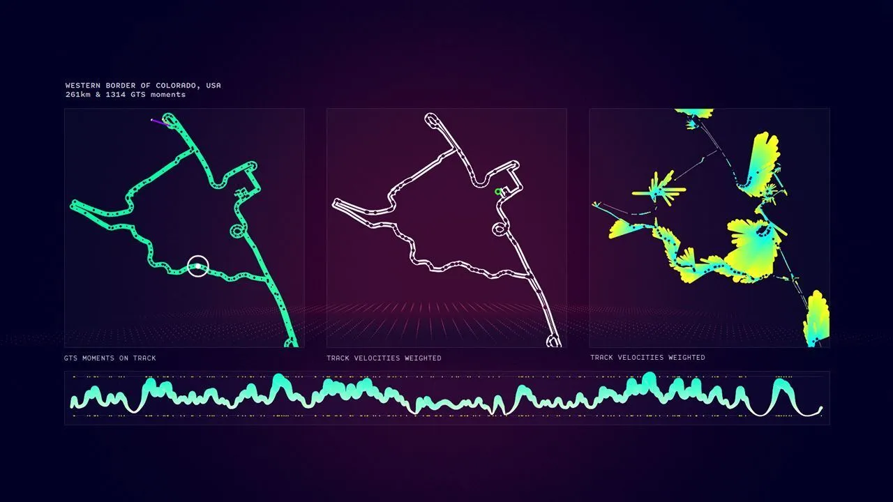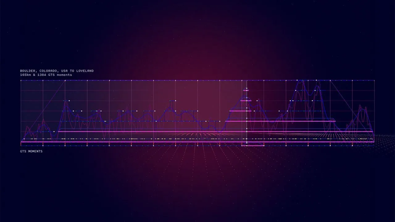 This work uses original recorded racing data and reports to create a soundscape and abstract visualization of a car through lines and subtle silhouettes. Datasets originate from the Porsche GTS community, collecting recorded tracks from all over the world. These datasets define the dramaturgy of the conceptual scenes to recreate the most dynamic moments of the user’s experience as an interactive webGL visualization.