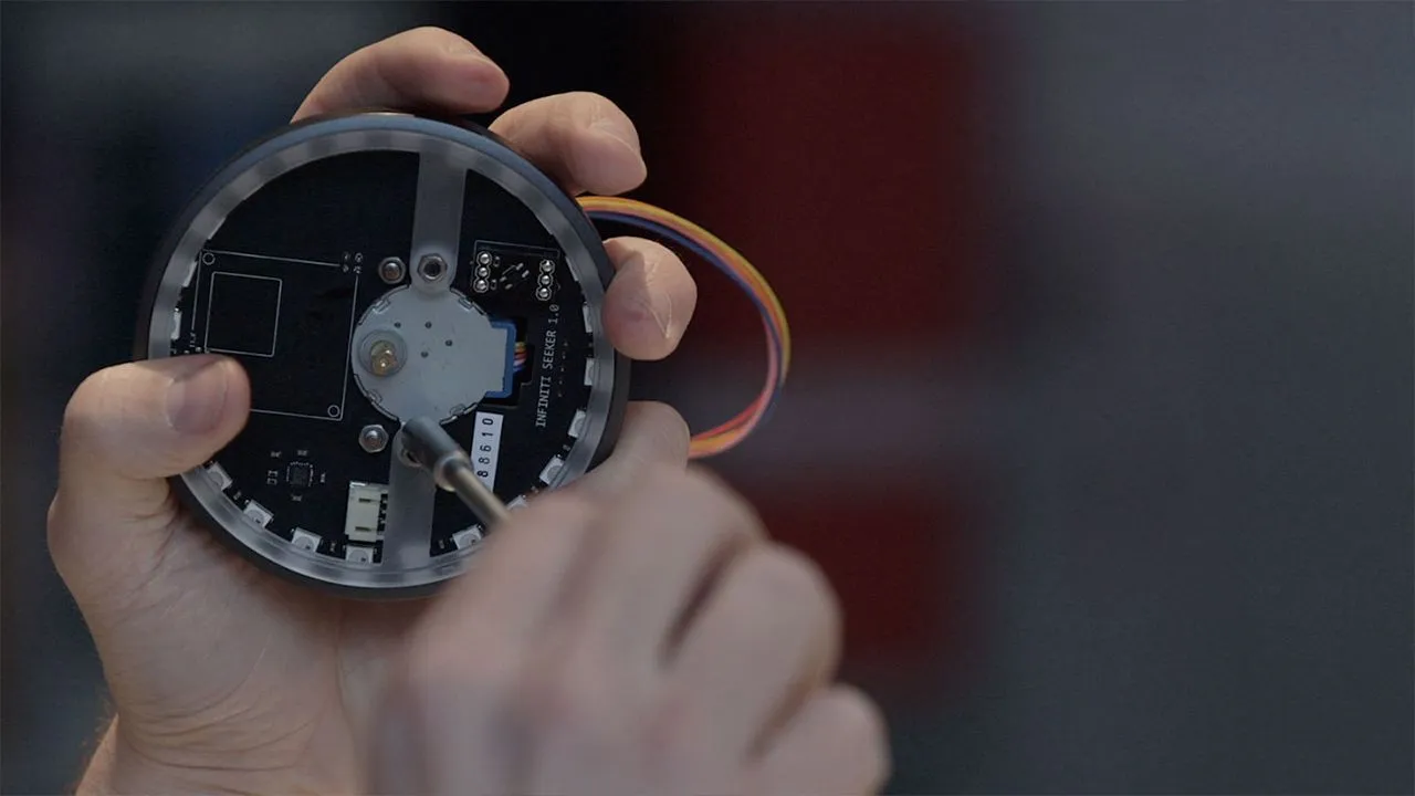 Seeker is a device which acts as a type of magical compass, made to invoke a sense of exploration and surprise to urban navigation. Although playful and intuitive, under its anodised aluminium shell a custom high-end system can be found, including various sensors such as GPS, accelerometer, and gyroscope, to provide a precise indication on its motorised dial-pointer and illuminated bezel.