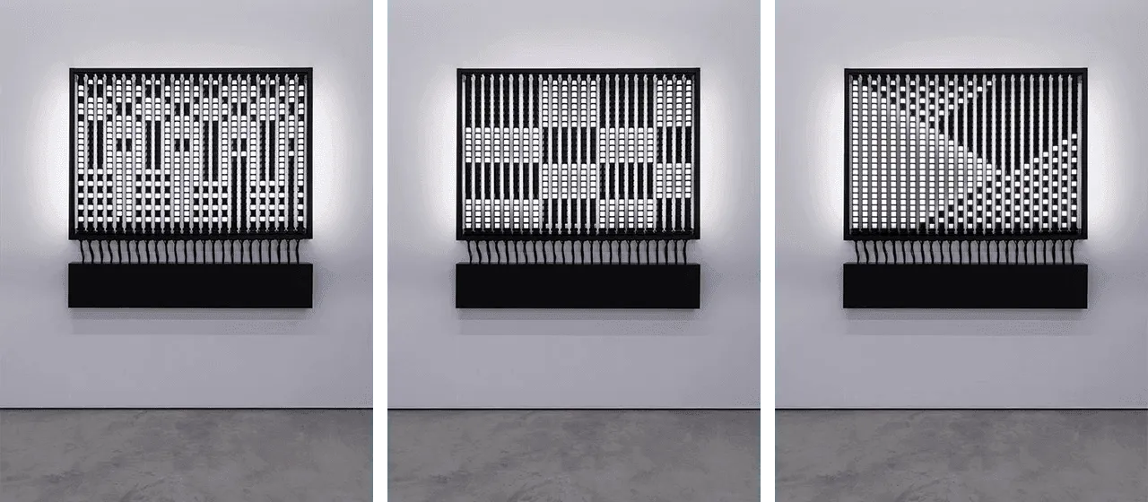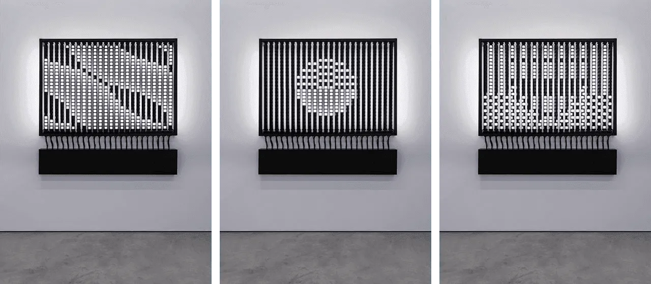 The piece has to be seen in motion in order to understand its mechanics. Behind a minimalistic appearance it encases a very elaborate and complex collection of circuitry and logics.